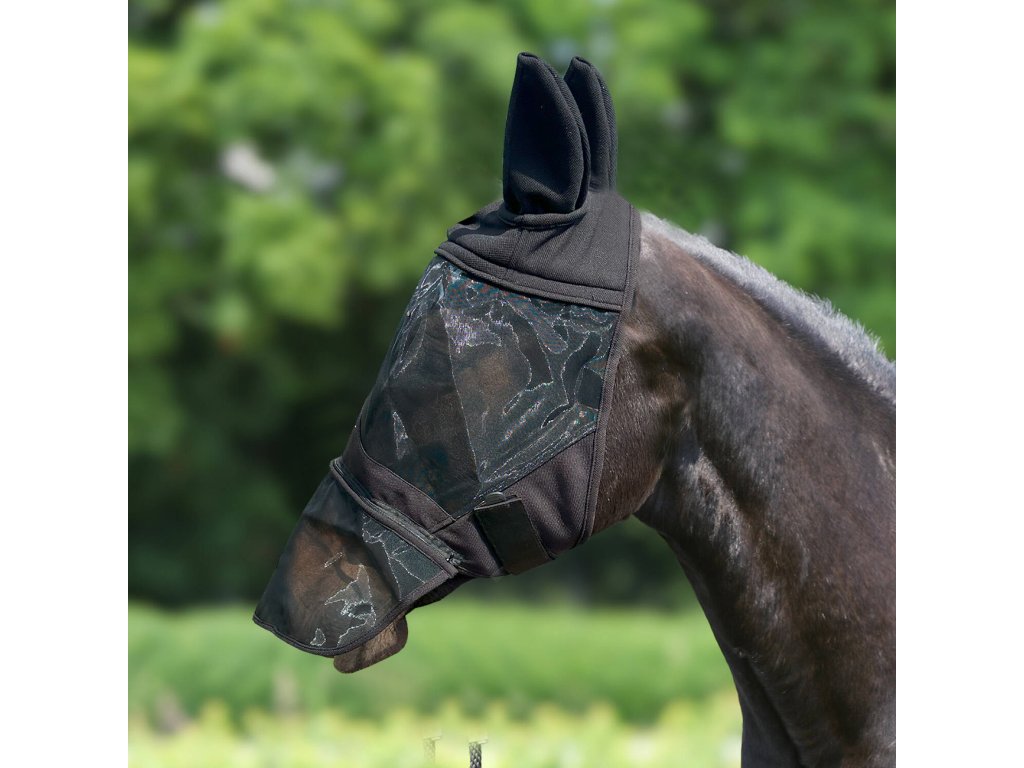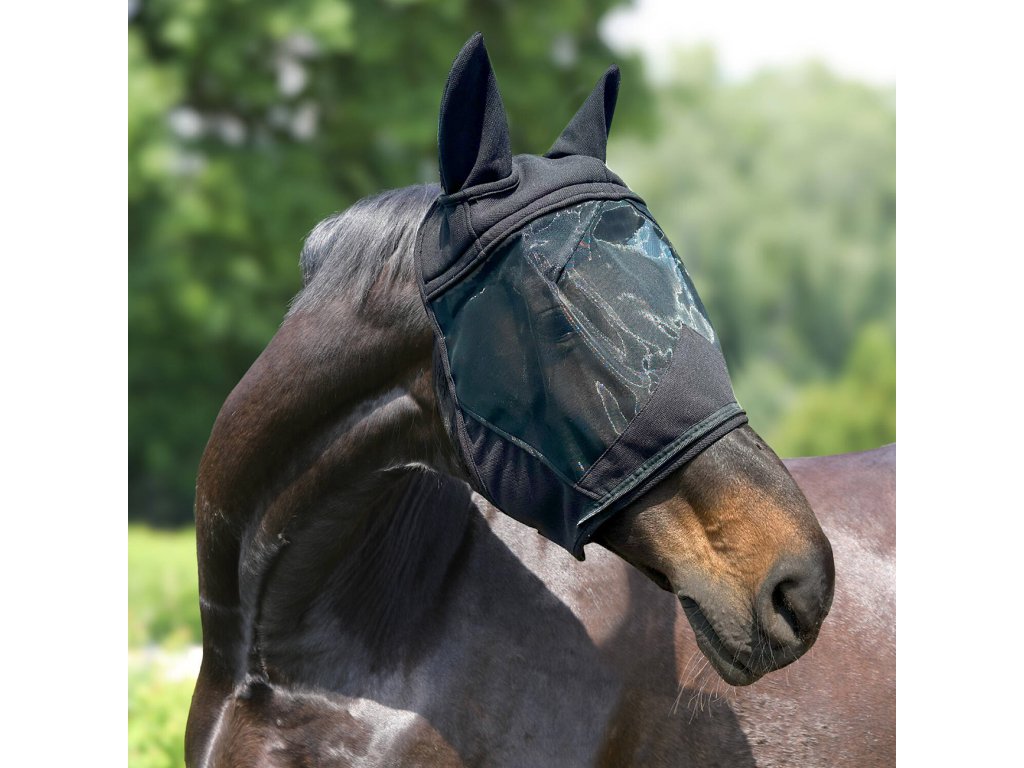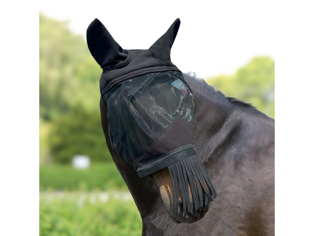 - Chráni citlivé oblasti hlavy koňa pred hmyzom